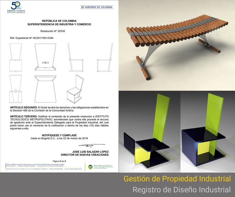 Gestión, documentación y solicitud de registro de diseño indtl. Cliente ITM Colombia